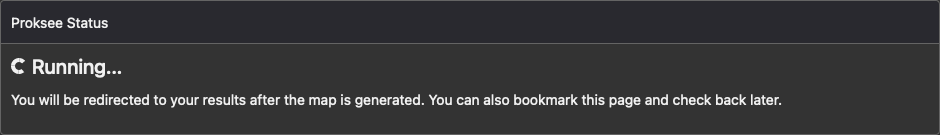 After submitting a job, you will be taken to the status page while the initial map is being created. Typically this only takes a few seconds.